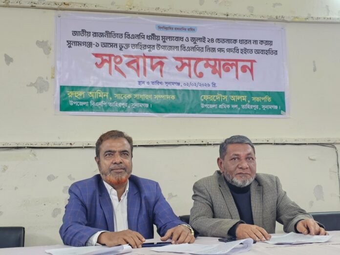 বিএনপির বিরুদ্ধে দুর্নীতি, চাঁদাবাজি ও নৈতিক বিচ্যুতির অভিযোগ তুলে দলীয় সব পদ-পদবি থেকে পদত্যাগ করেছেন তাহিরপুর উপজেলা বিএনপির সাবেক সাধারণ সম্পাদক রুহুল আমিন এবং উপজেলা শ্রমিক দলের সভাপতি ফেরদৌস আলম।