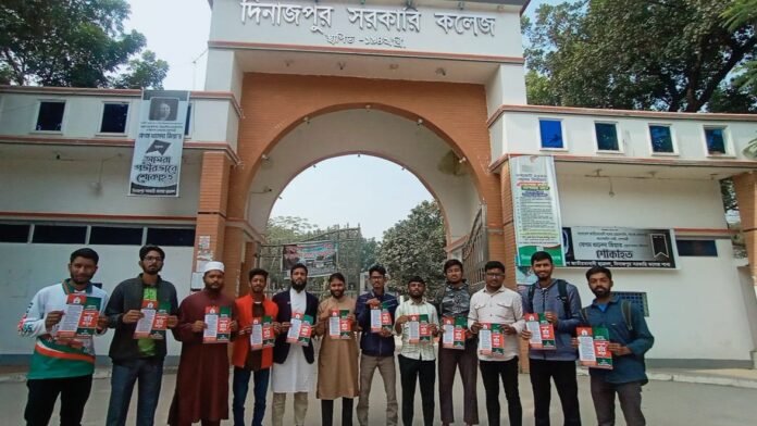 ছাত্রশিবির দিনাজপুর সরকারি কলেজ শাখা কর্তৃক আসন্ন জাতীয় নির্বাচন ও গণভোটকে কেন্দ্র করে গণভোট নিয়ে প্রচারণা করেন। এসময় সাধারণ শিক্ষক, সাধারণ শিক্ষার্থী, ছাত্র সমাজের কাছে লিফলেট, স্টিকার বিতরণ করতে দেখা যায় এবং তাদের মাঝে তুলে ধরেন হ্যাঁ তে ভোট দিলে কি কি হবে এবং না তে ভোট দিলে কি হবে।