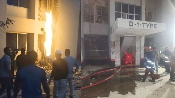 ফায়ার সার্ভিস ও স্থানীয় সূত্রে জানা যায়, ডি-১ টাইপ নামের ছয়তলা ভবনের নিচতলায় গ্যাস রাইজারে হঠাৎ বিকট শব্দে বিস্ফোরণ ঘটে এবং সঙ্গে সঙ্গে আগুন ধরে যায়। মুহূর্তের মধ্যেই আগুন ভবনটির পাঁচ তলা পর্যন্ত ছড়িয়ে পড়ে।