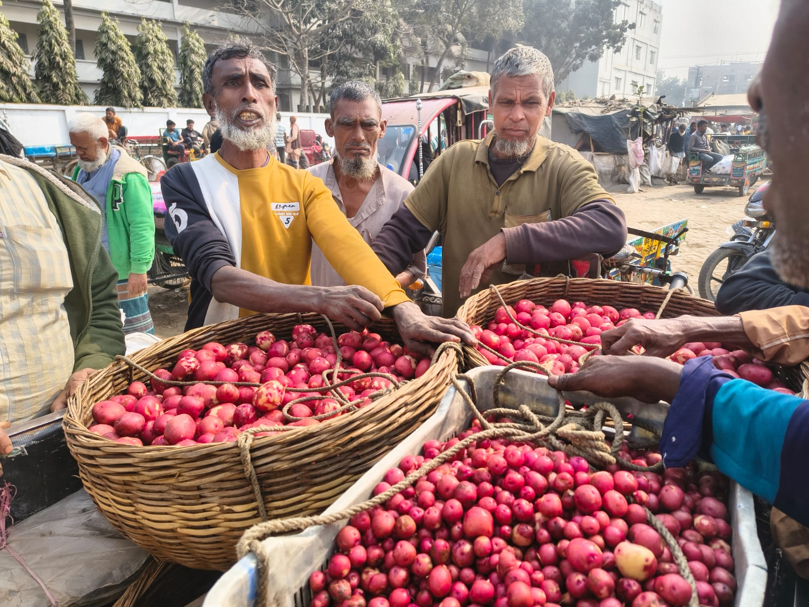 কৃষক ও ব্যাপারীদের সঙ্গে কথা বলে জানা যায়, এক সপ্তাহ আগেও প্রতি মণ দেশী লাল পাকড়ি আলু ৮০০ থেকে ১ হাজার টাকায় বিক্রি হয়েছে। সেই আলুই বৃহস্পতিবার বিক্রি হয়েছে ২৮০ থেকে ৫০০ টাকা মণে। মহাস্থান পাইকারি মোকামে কার্ডিনাল জাতের আলু প্রতি মণ ৩০০ টাকায় বিক্রি হয়েছে, যেখানে ১০ দিন আগে একই আলু বিক্রি হয়েছিল ৫০০ টাকায়। সাদা গ্রানুলা জাতের আলু বিক্রি হয়েছে প্রতি মণ ২২০ টাকায়, যা আগে ছিল ৪০০ টাকা।