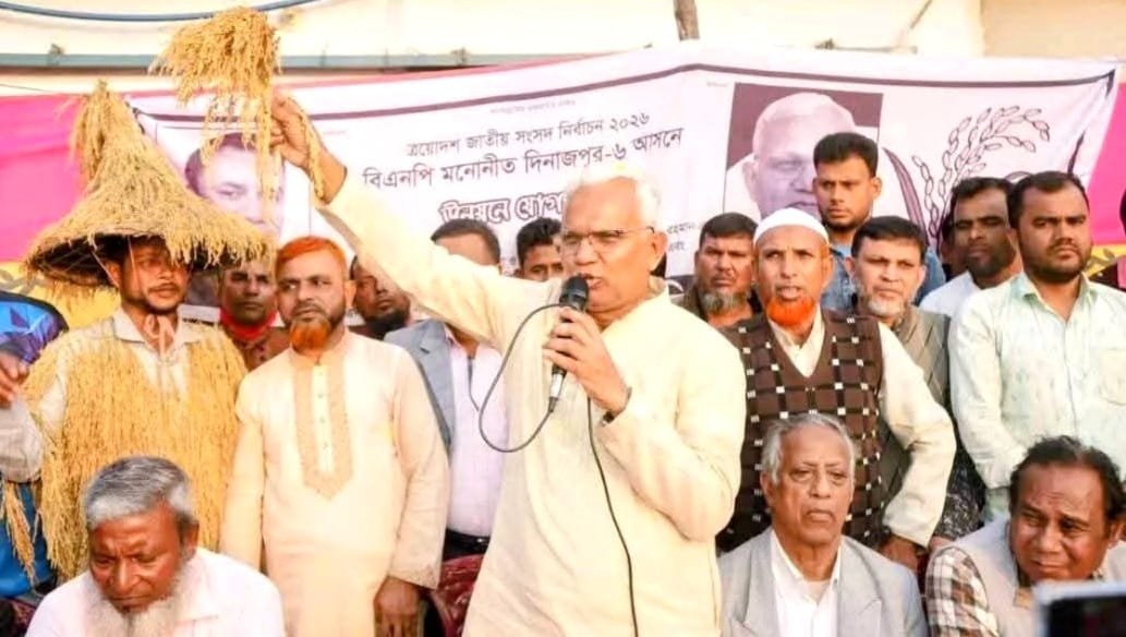 আসন্ন ত্রয়োদশ জাতীয় সংসদ নির্বাচনে দিনাজপুর-৬ আসনে ধানের শীষে ভোট দিয়ে জনগণের পাশে থেকে সেবা করার সুযোগ সৃষ্টি করে দেওয়ার আহবান জানান এই আসনে বিএনপি মনোনীত সংসদ সদস্য প্রার্থী অধ্যাপক ডাঃ এজেডএম জাহিদ হোসেন। সেই সাথে শহীদ প্রেসিডেন্ট জিয়াউর রহমানের আদর্শে গড়া বাংলাদেশ জাতীয়তাবাদি দল বিএনপিকে দেশ পরিচালনার দ্বায়িত্ব পালন করার সুযোগ দিন।