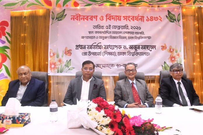 ঢাকা বিশ্ববিদ্যালয় প্রাণরসায়ন ও অণুপ্রাণ বিজ্ঞান বিভাগের নবীন বরণ ও বিদায় সংবর্ধনা (০৫ ফেব্রুয়ারি ) বৃহস্পতিবার বিভাগের কামালউদ্দিন আহমেদ লেকচার গ্যালারিতে অনুষ্ঠিত হয়েছে। ঢাকা বিশ্ববিদ্যালয়ের প্রো-ভাইস চ্যান্সেলর (শিক্ষা) অধ্যাপক ড. মামুন আহমেদ অনুষ্ঠানে প্রধান অতিথি হিসেবে উপস্থিত ছিলেন।