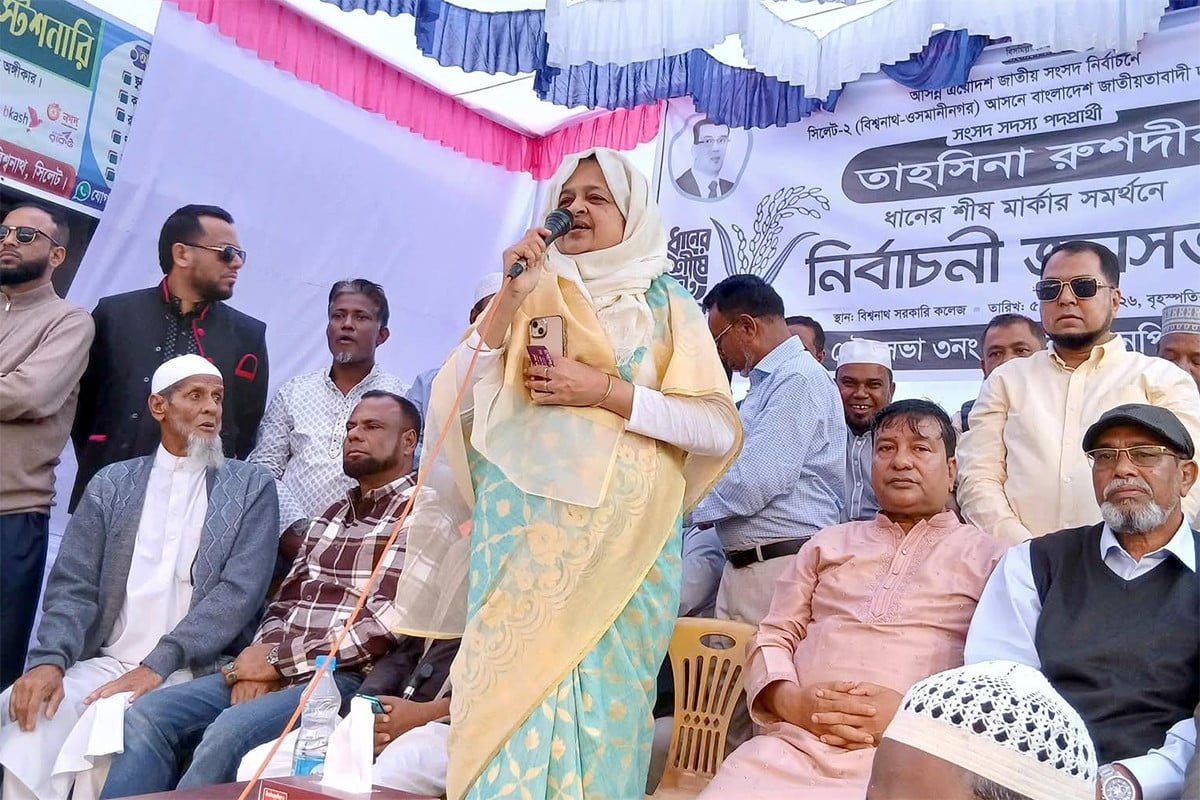 সিলেট-২ (বিশ্বনাথ-ওসমানীনগর) আসনে বিএনপি মনোনীত সংসদ সদস্য পদপ্রাথী, ‘নিখোঁজ’ বিএনপি নেতা এম. ইলিয়াস আলীর সহধর্মিণী তাহসিনা রুশদীর লুনা বলেছেন, ‘ষড়যন্ত্র থেমে থাকে না। তা বিভিন্ন সময়ে বিভিন্ন ভাবে আসে। ভোটাধিকার প্রয়োগ করে, সবাইকে ভোট পাহারা দিতে হবে। ফলাফল নিয়ে ভোট সেন্টার ত্যাগ করবেন। ভোটের ফলাফল যাতে কেউ ছিনিয়ে নিতে না পারে।