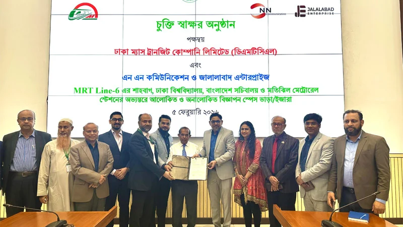 শাহবাগ, ঢাকা বিশ্ববিদ্যালয়, সচিবালয় ও মতিঝিল মেট্রো স্টেশনের অভ্যন্তরে বিজ্ঞাপন প্রদর্শনে স্পেস বরাদ্দ পেয়েছে এন এন কমিউনিকেশন এবং জালালাবাদ এন্টারপ্রাইজ। মেট্রোরেলের নির্মাণ ও পরিচালনার দায়িত্বে থাকা ডিএমটিসিএলের সঙ্গে বৃহস্পতিবার এ সংক্রান্ত সই করেছে প্রতিষ্ঠান দুটি।