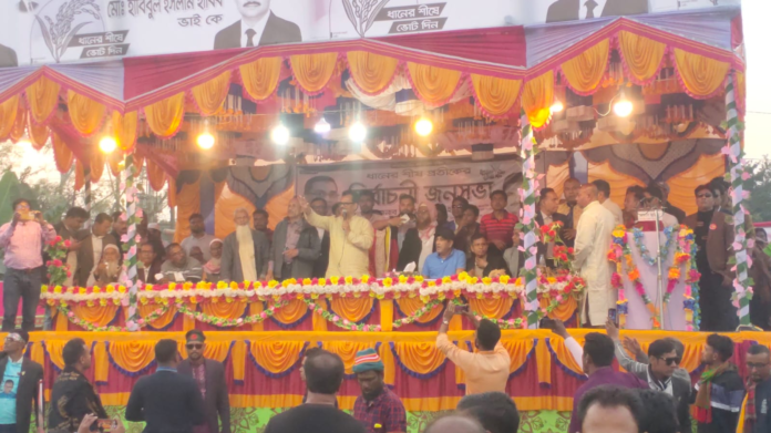 বৃহস্পতিবার সন্ধায় তালা বিদের স্কুল মাঠে তালা সদর ইউনিয়ন বিএনপির আয়োজনে জনসভায় প্রধান অতিথি হিসেবে বক্তব্য রাখেন কেন্দ্রীয় বিএনপির প্রকাশনা বিষয়ক সম্পাদক ও তালা ও কলারোয়ার সাবেক সংসদ সদস্য হাবিবুল ইসলাম হাবিব।