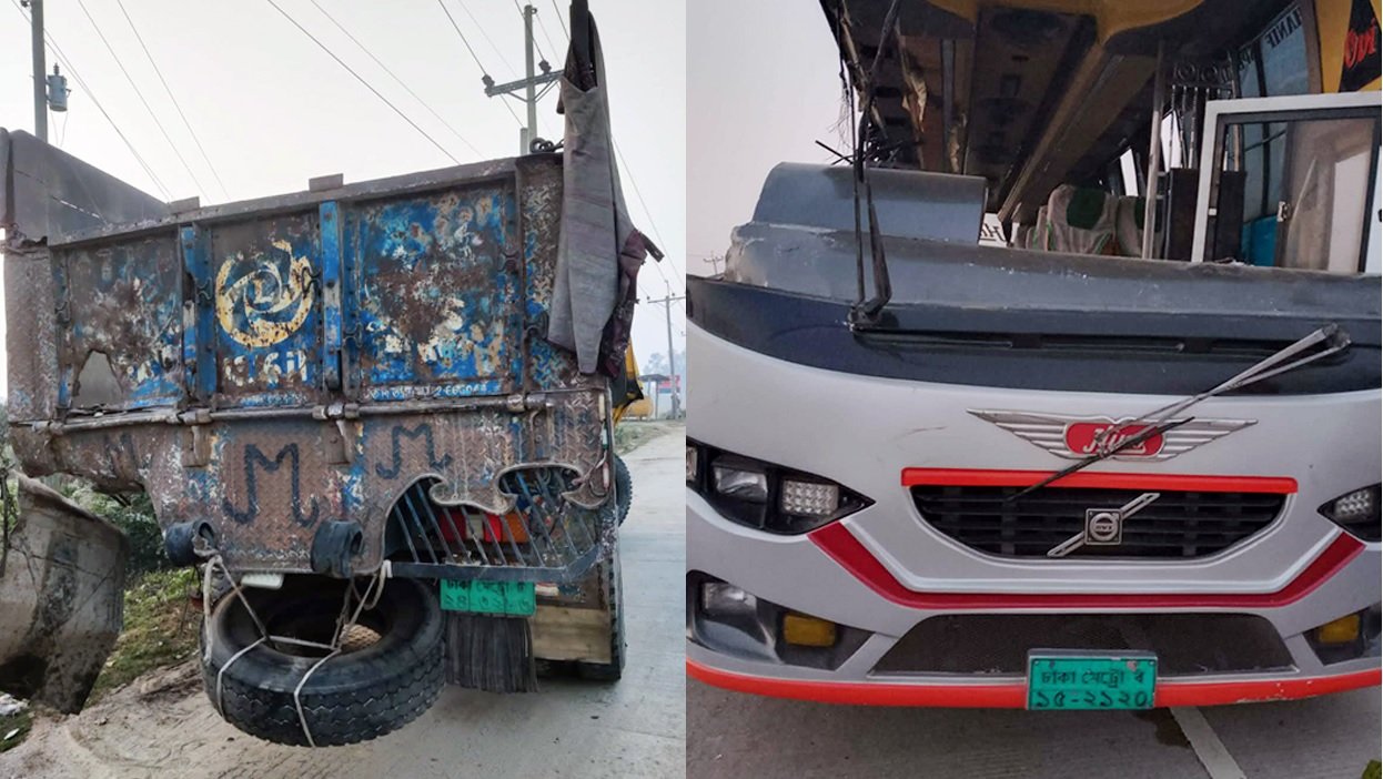 পুলিশ ও প্রত্যক্ষদর্শী সূত্রে জানা গেছে, কুয়াশাচ্ছন্ন ভোরে একটি ট্রাক সামনে থাকা অপর একটি ট্রাকের পেছনে সজোরে ধাক্কা দেয়। এতে ট্রাকটির সামনের অংশ দুমড়ে-মুচড়ে যায়। ঠিক সেই মুহূর্তে পেছন দিক থেকে আসা দ্রুতগতির ‘হানিফ পরিবহনের’ একটি বাস দুর্ঘটনাকবলিত ট্রাকটিকে আবারও ধাক্কা দিলে এই ত্রিমুখী সংঘর্ষের সৃষ্টি হয়।