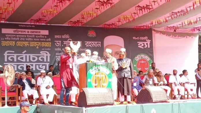 জনসভায় প্রার্থীদের পরিচয় করিয়ে দিয়ে শফিকুর রহমান বলেন, বরিশাল-৩ আসনে ব্যারিস্টার ফুয়াদকে আমরা ১১ দলীয় নির্বাচনী ঐক্য জোট থেকে মনোনয়ন দিয়েছি। আগামীর বাংলাদেশ ঈগলের গতিতে এগিয়ে যাবে। আমরা ঈগল প্রতীক নিয়ে এগিয়ে যাব। আল্লাহ তাআলা ঈগল প্রতীক কবুল করুন। ঈগল প্রতীক বিজয় লাভ করবে ইনশাআল্লাহ।