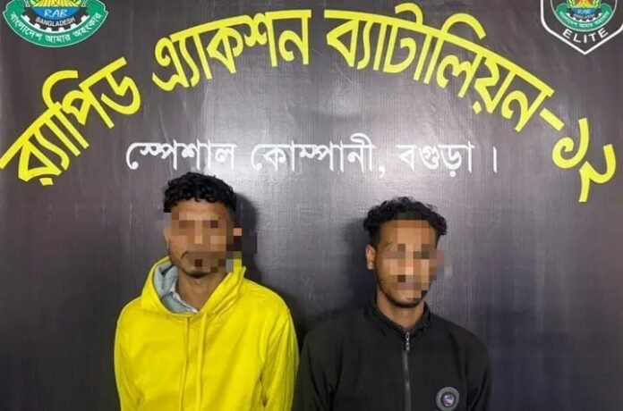 সিপিএসসি বগুড়া, র্যাব-১২ গোপন সংবাদের ভিক্তিতে জানতে পারে যে, বগুড়া গাবতলী থানার মামলা নং-৪, তারিখ- ১১ ডিসেম্বর, ২০২৫। ধারা- ১৪৩/৩২৩/৩২৬/৩০৭/৩০২/৩৪ পেনাল কোড ১৮৬০ এর ৬নং এজাহার নামীয় পলাতক আসামী মোঃ নাঈম ইসলাম (২১) গ্রেফতার এড়াতে বগুড়া গাবতলী উপজেলা প্রথমারছেও এলাকায় এবং একই মামলার ৭নং এজাহার নামীয় পলাতক আসামী মোঃ তৌফিক (২৩), সোনাপুর এলাকায় অবস্থান করছে। উক্ত তথ্যের ভিক্তিতে র্যাব-১২, অধিনায়ক মহোদয়ের দিকনির্দেশনায় আজ ৭ ফেব্রুয়ারি রাত আনুমানিক ভোর ৬ টার সময় র্যাব-১২, সিপিএসসি বগুড়া এর একটি চৌকস আভিযানিক দল বগুড়া গাবতলী উপজেলা প্রথমারছেও এবং সোনাপুর এলাকায় পৃথক দুটি অভিযান পরিচালনা করে উক্ত মামলার ৬ নং এজাহার নামীয় পলাতক আসামী মোঃ নাঈম ইসলাম (২১), পিতা মোঃ টুলু মিয়া, সাং-প্রথমারছেও, এবং ৭ নং এজাহারনামীয় পলাতক আসামী মোঃ তৌফিক (২৩), পিতা আব্দুল সালেক মিয়া, সাং-সোনাপুর, উভয়ের থানা-গাবতলী, জেলা-বগুড়াকে গ্রেফতার করতে সক্ষম হয়। গ্রেফতারকৃত আসামীদের পরবর্তী আইনানুগ ব্যবস্থা গ্রহণের জন্য বগুড়া গাবতলী থানায় হস্তান্তর করা হয়।