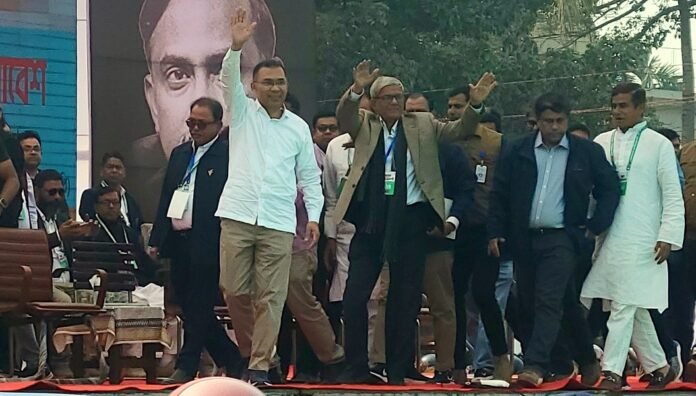শনিবার (৭ ফেব্রুয়ারি) সকালে ঠাকুরগাঁও জেলা স্কুল বড়মাঠে আয়োজিত এক বিশাল নির্বাচনী জনসভায় তিনি এসব কথা বলেন। জেলা বিএনপির সভাপতি মির্জা ফয়সাল আমিনের সভাপতিত্বে অনুষ্ঠিত এই সভায় তারেক রহমান দেশের সামগ্রিক উন্নয়ন ও জনগণের অধিকার পুনরুদ্ধারে ধানের শীষে ভোট দেওয়ার আহ্বান জানান।