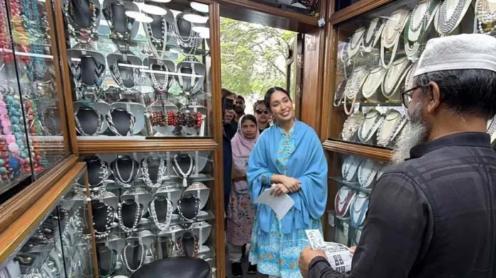 লিফলেট বিতরণের সময় জাইমা বলেন, “আমি জাইমা রহমান, তারেক রহমানের কন্যা। আমার আব্বা ঢাকা-১৭ আসনে ধানের শীষ প্রার্থী, তার পক্ষে ভোট চাইতে এসেছি। এটি (লিফলেট) নিন। দোয়া করবেন।