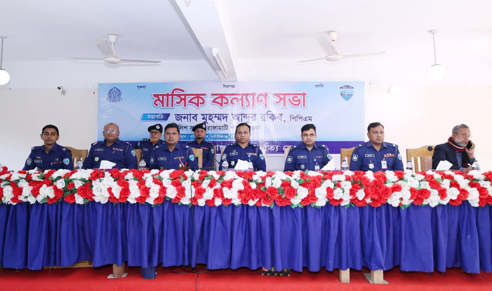 আজ ০৭ ফেব্রুয়ারি ২০২৬ খ্রি. রাঙ্গামাটি পার্বত্য জেলার পুলিশ লাইন্সে রাঙ্গামাটি পার্বত্য জেলা পুলিশের মাসিক কল্যাণ সভা অনুষ্ঠিত হয়। উক্ত সভায় সভাপতিত্ব করেন রাঙ্গামাটি পার্বত্য জেলার পুলিশ সুপার জনাব মুহম্মদ আব্দুর রকিব পিপিএম মহোদয়। সভা সঞ্চালনা করেন অতিরিক্ত পুলিশ সুপার ( প্রশাসন ও অর্থ ) জনাব মোঃ ইকবাল হোছাইন, পিপিএম মহোদয়।