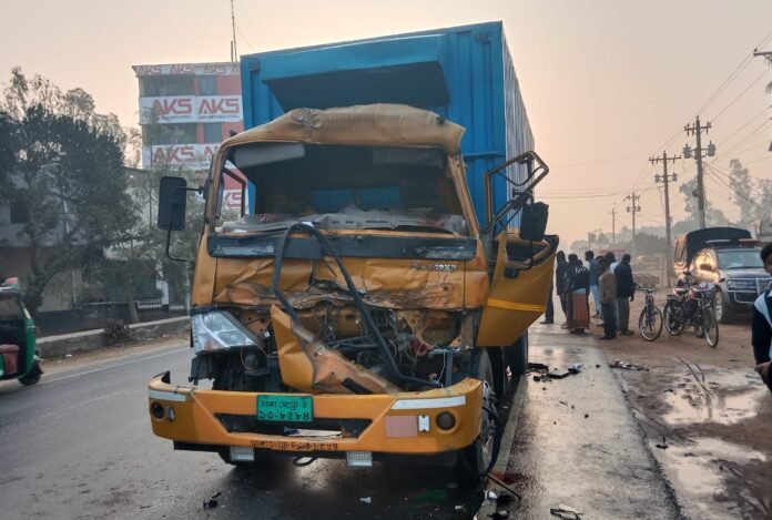 প্রত্যক্ষদর্শী ও পুলিশ সূত্রে জানা যায়, ভোরের দিকে মহাসড়কের দিনাজপুরগামী লেনের পাশে মালবোঝাই একটি ট্রাক থামিয়ে নষ্ট চাকা মেরামত করছিলেন ট্রাকচালক ও তার সহকারী। এ সময় পেছন থেকে দ্রুতগতিতে আসা একটি কার্ভাড ভ্যান ট্রাকটিকে সজোরে ধাক্কা দেয়। এতে ভ্যানটির সামনের অংশ দুমড়ে-মুচড়ে যায় এবং কেবিনে আটকে পড়েন চালক ও তার সহকারী।