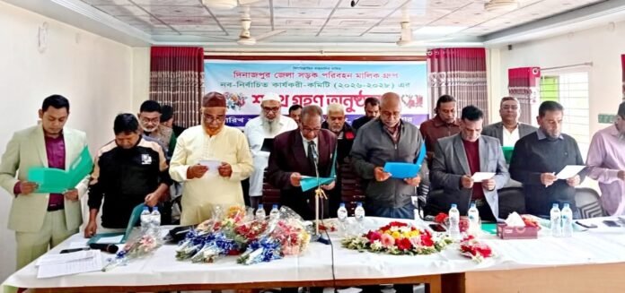 রোববার (৮ ফেব্রুয়ারি) দিনাজপুর জেলা সড়ক পরিবহন মালিক গ্রুপ এর প্রধান কার্যালয়ে দিনাজপুর জেলা সড়ক পরিবহন মালিক গ্রুপ এর নব-নির্বাচিত কার্যকরি কমিটি (২০২৬-২০২৮) এর শপথ গ্রহণ অনুষ্ঠিত হয়েছে।
