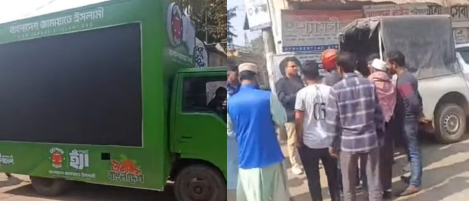 বরিশাল-২ আসনের দাঁড়িপাল্লা মার্কার প্রার্থী আলহাজ মাস্টার আব্দুল মান্নানের পক্ষে প্রচারণা চালানোর সময় তা জব্দ করেছে ভ্রাম্যমান আাদলতের বিচারক।