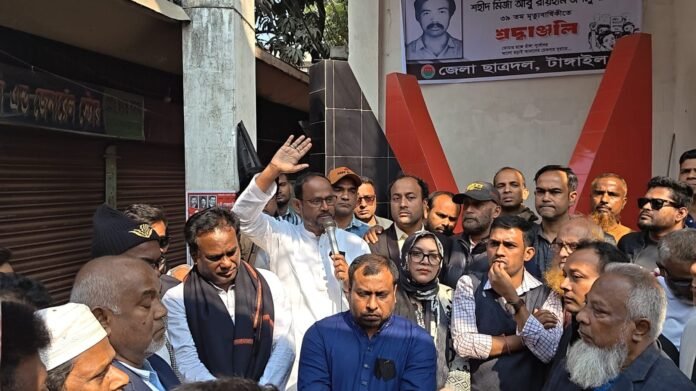 জেলা ছাত্রদলের আহ্বায়ক দুর্জয় হোড় শুভর সভাপতিত্বে এতে প্রধান অতিথি হিসেবে উপস্থিত ছিলেন বিএনপির কেন্দ্রীয় প্রচার সম্পাদক ও টাঙ্গাইল-৫ (সদর) আসনের ধানের শীষের প্রার্থী সুলতান সালাউদ্দিন টুকু।