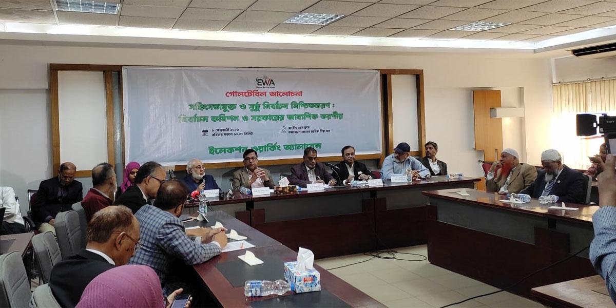 রোববার (৮ ফেব্রুয়ারি) জাতীয় প্রেস ক্লাবে ‘সহিংসতামুক্ত ও সুষ্ঠু নির্বাচন নিশ্চিতকরণ: নির্বাচন কমিশন ও সরকারের আবশ্যিক করণীয়’ শীর্ষক গোলটেবিল আলোচনায় এ আহ্বান জানান বক্তারা।