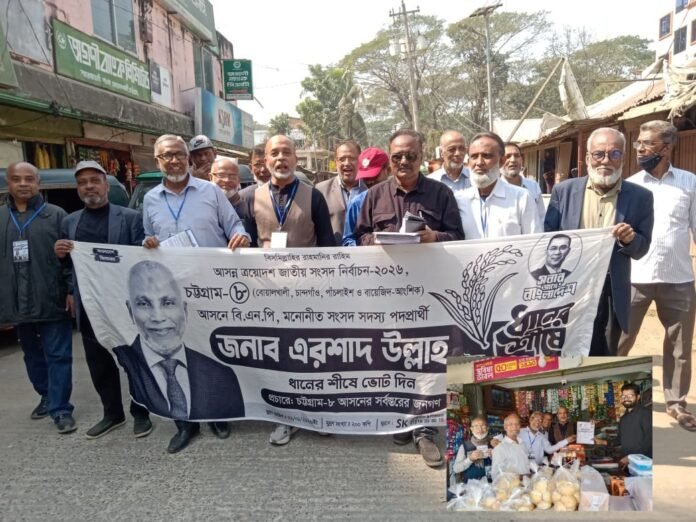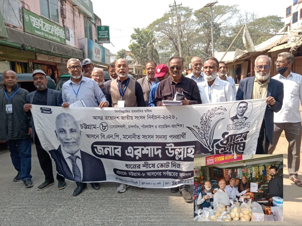 চট্টগ্রামে-৮ সংসদীয় আসন ধানের শীষের বিএনপি মনোনীত প্রার্থী ও মহানগর আহ্বায়ক আলহাজ্ব এরশাদ উল্লাহ’র সমর্থনে ধানের শীষে ভোট চাইলেন আশি’র দশকের ছাত্রদল নেতৃবৃন্দ।