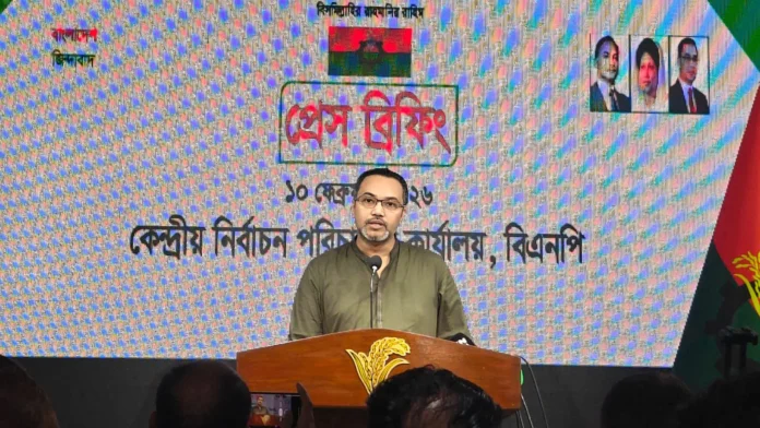 তিনি আরো বলেন, একইভাবে আমরা দেখেছি, খুলনা-১ আসনের সেই দলের প্রার্থী ভোটারদের মধ্যে নিজ হাতে টাকা বিলাচ্ছেন, যা ইতোমধ্যে বিভিন্ন গণমাধ্যমে এসেছে। এভাবেই নিশ্চিত পরাজয়ের মুখে দেশজুড়ে টাকা দিয়ে ভোট কেনার পরিকল্পনা হাতে নিয়েছে একটি দল। এটি আপনারা সবাই জানেন, কীভাবে তারা বাড়ি বাড়ি গিয়ে ভোটার আইডি, বিকাশ, নগদ ও রকেট নম্বর সংগ্রহ করে অসৎ উদ্দেশ্য বাস্তবায়নের উদ্যোগ নিয়েছে। আমরা জানতে পেরেছি, সেই দলের একজন শীর্ষ নেতার আসন, কুমিল্লা-১১ চৌদ্দগ্রামে ওই দলের সন্ত্রাসীরা রাতের আঁধারে দেশীয় অস্ত্রশস্ত্রে সজ্জিত হয়ে বিএনপির নেতাকর্মীদের ওপর হামলা চালায়।