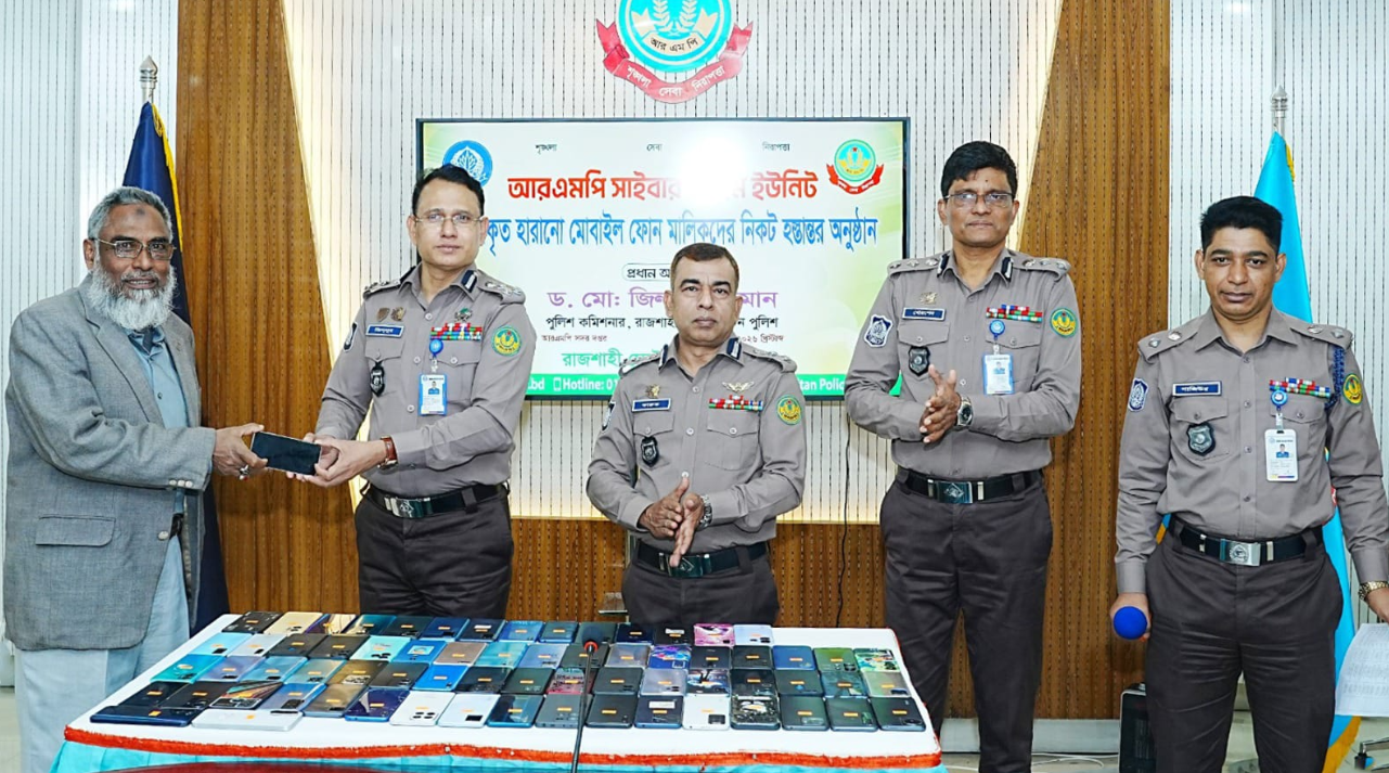 রাজশাহী মেট্রোপলিটন পুলিশের (আরএমপি) সাইবার ক্রাইম ইউনিটের প্রযুক্তিগত সহায়তায় উদ্ধার হওয়া ৭৫টি হারানো মোবাইল ফোন প্রকৃত মালিকদের কাছে আনুষ্ঠানিকভাবে হস্তান্তর করা হয়েছে।