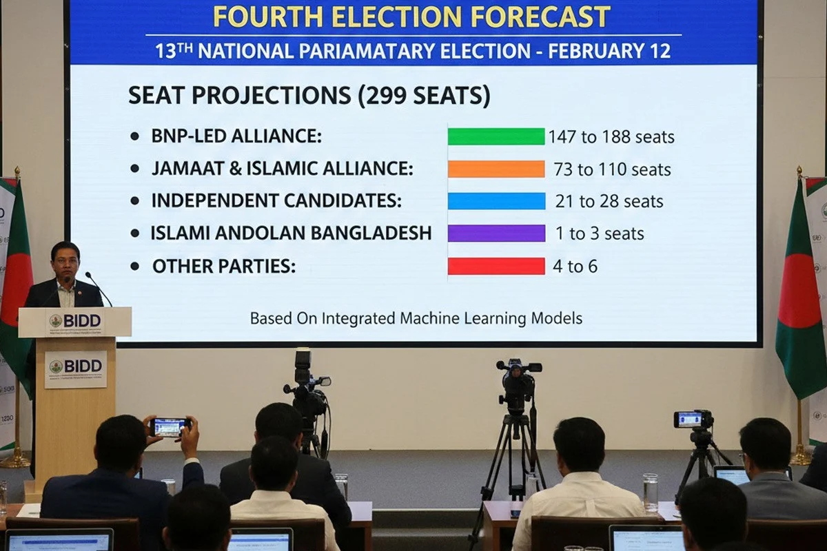 বিআইডিডি জানিয়েছে, পূর্বাভাস তৈরিতে প্রচলিত জনমত জরিপের পাশাপাশি আধুনিক গবেষণাপদ্ধতি ব্যবহার করা হয়েছে। এতে ১৯৯১ থেকে ২০০৮ সালের জাতীয় নির্বাচনের তথ্য বিশ্লেষণ করে ভোটার উপস্থিতি ও দলভিত্তিক ভোটের ধারা নিরূপণ করা হয়েছে। এছাড়া ২০২৪ সালের আগস্টের পর বিভিন্ন গবেষণা প্রতিষ্ঠানের জরিপ যুক্ত করে মেশিন লার্নিং মডেলের মাধ্যমে সম্ভাব্য ফলাফল বিশ্লেষণ করা হয়েছে।