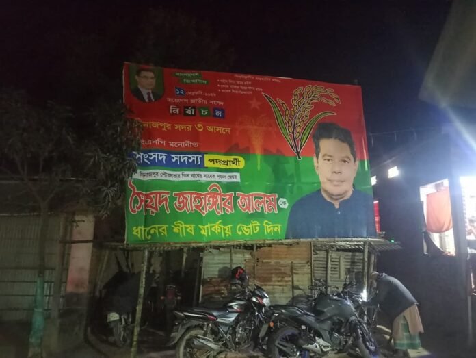 জামাত-জোটের এমপি প্রার্থী সহযোগী মোঃ আব্দুর রাজ্জাক জানান নির্বাচন কমিশন থেকে আমাদেরকে ২২ টি বিলবোর্ডের অনুমোদন দিয়েছে। কিন্তু ধানের শীষের সংসদ প্রার্থী সৈয়দ জাহাঙ্গির হোসেন পক্ষে প্রতিটি সেন্টারে একটি করে বিলবোর্ড লাগানো হচ্ছে। তাও আবার নিরর্বাচনি প্রচারনা শেষ হয়ার পরে।