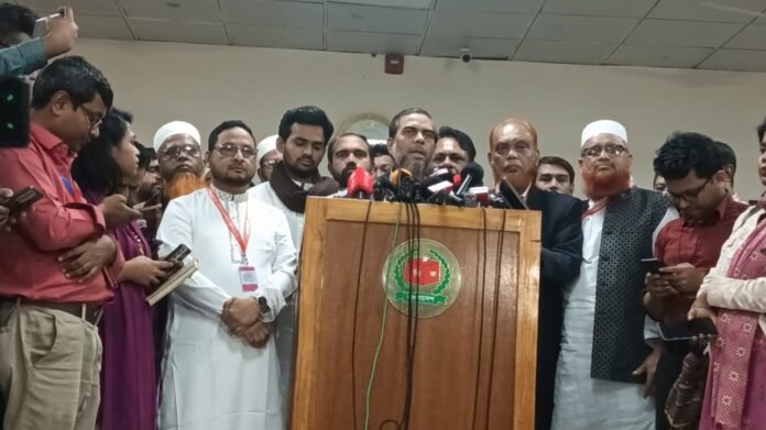 আসন্ন ১২ ফেব্রুয়ারি জাতীয় সংসদ নির্বাচনকে সামনে রেখে দেশের বিভিন্ন স্থানে হামলা, হুমকি ও নির্বাচনী পরিবেশ বিঘ্নিত করার অভিযোগ তুলে নির্বাচন কমিশনের (ইসি) সঙ্গে বৈঠক করেছে ১১ দলের একটি প্রতিনিধি দল। বুধবার (১১ ফেব্রুয়ারি) নির্বাচন কমিশন ভবনে অনুষ্ঠিত বৈঠক শেষে সাংবাদিকদের ব্রিফ করেন বাংলাদেশ জামায়াতে ইসলামীর কেন্দ্রীয় সহকারী সেক্রেটারি জেনারেল অ্যাডভোকেট আহসানুল মাহবুব জুবায়ের।