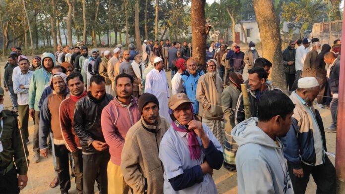 যশোর শহরতলীর খোলাডাঙ্গা সরকারি প্রাথমিক বিদ্যালয় ভোটকেন্দ্রে সকাল থেকেই ভোটারদের সরব উপস্থিতি লক্ষ্য করা গেছে। জেলার বিভিন্ন কেন্দ্রেও নারী-পুরুষ, তরুণ ও বয়োজ্যেষ্ঠ ভোটারদের স্বতঃস্ফূর্ত উপস্থিতি দেখা গেছে। ভোটাররা সারিবদ্ধভাবে লাইনে দাঁড়িয়ে শান্তিপূর্ণ পরিবেশে তাদের ভোটাধিকার প্রয়োগ করছেন।