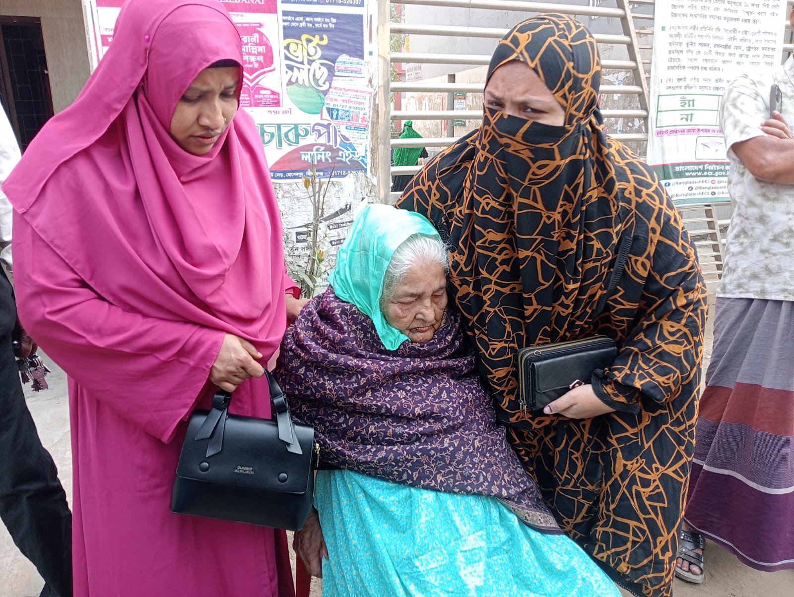 ভোট দিতে পেরে আমি খুশি। এই বয়সেরও আল্লাহ ভোট কেন্দ্র পর্যন্ত আনছে তাতে লাখ লাখ শোকর।পুত্রবূধুর সাথে ভোট দিতে আসেন ৯৫ বছরের আছিয়া বেগম |
