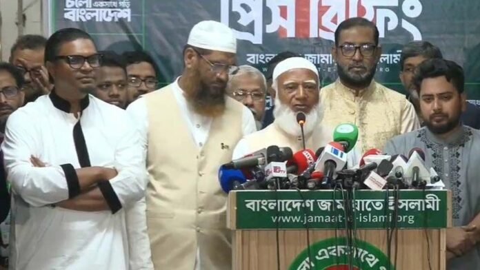 এরপরই ফলাফল ঘোষণার মধ্যে ঢাকার মগবাজারে জামায়াত কার্যালয়ে জরুরি সংবাদ সম্মেলনে আসেন দলের আমির।