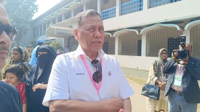 রাজধানীর মোহাম্মদপুরে রেসিডেন্সিয়াল মডেল স্কুল অ্যান্ড কলেজে ভোটকেন্দ্র পরিদর্শনে এসেছিলেন মালয়েশিয়ার নির্বাচন কমিশনের চেয়াম্যান রামলান হারুন। তিনি পর্যবেক্ষণ শেষে সাড়ে ১১টার দিকে সাংবাদিকদের সঙ্গে কথা বলেন। কয়েকটি কেন্দ্র পরিদর্শনের অভিজ্ঞতা থেকে তিনি বলেন, ‘আমরা ভোটারদের মধ্যে যথেষ্ট উদ্দীপনা দেখছি। একটি গ্রহণযোগ্য নির্বাচনের পরিবেশ বিদ্যমান রয়েছে। সাধারণ ভোটারদের উৎসবমুখর পরিবেশে ভোট দিতে দেখা গেছে।