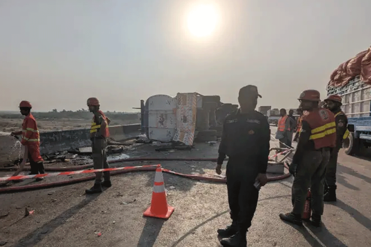 পাকিস্তানের সিন্ধু প্রদেশের তেলবাহী ট্যাংকার এবং বাসের মধ্যে সংঘর্ষে ১১ জন নিহত হয়েছেন। শুক্রবার (১৩ ফেব্রুয়ারি) গডাপ শহরের করাচি-হায়দরাবাদ মহাসড়কের মোটরওয়ের পুলিশ স্টেশনের সামনে এ ঘটনা ঘটে।