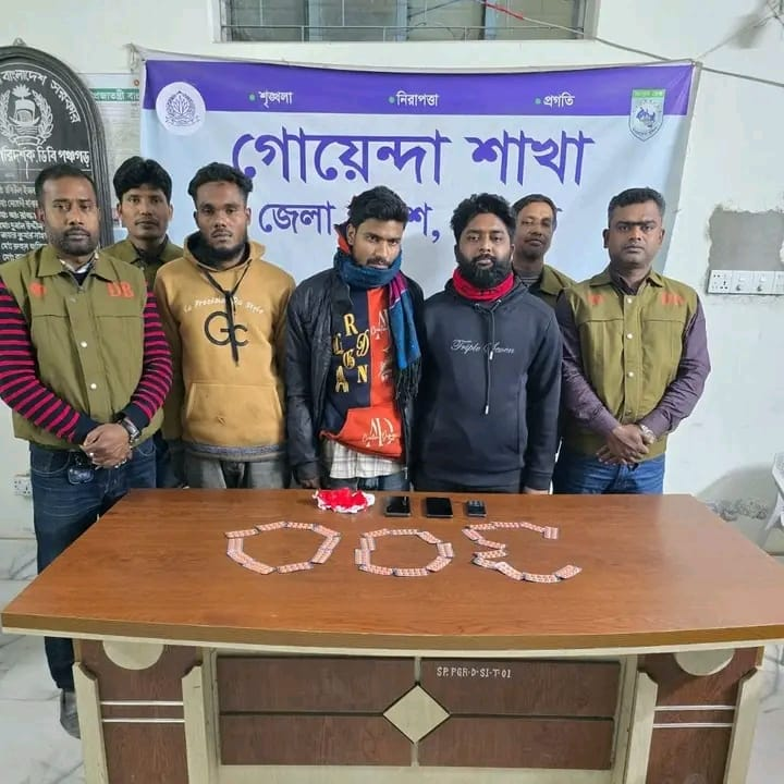পুলিশ সুপার পঞ্চগড় মহোদয়ের সার্বিক দিক নির্দেশনায় অফিসার ইনচার্জ জেলা গোয়েন্দা শাখার তত্ত্বাবধানে অদ্য ১৬/০২/২০২৬ ইং তারিখ জেলা গোয়েন্দা শাখা পঞ্চগড় এর এস আই আবু হোসেন এর নেতৃত্বে এ এস আই আবুল কালাম আজাদ সহ সঙ্গীয় অফিসার ফোর্স এর সমন্বয়ে একটি চৌকষ টিম গোপন সংবাদের ভিত্তিতে পঞ্চগড় সদর থানাধীন পৌরসভার আনসার ভিডিপি অফিসের সামনে পাকা রাস্তার উপর অভিযান চালিয়ে রাত্রি ১০.৫৫ ঘটিকায় ৩০০ পিস নেশা জাতীয় মাদকদ্রব্য ট্যাপেন্টাডোল ট্যাবলেট, ০৩ টি মোবাইল ফোন, ০১ টি মোটরসাইকেল সহ ১.মোঃ সালমান হোসেন সোহাগ (২৫) পিতা-মৃত আবুল হোসেন, গ্রাম পূর্ব ভাউলাগঞ্জ ,থানা দেবিগঞ্জ, পঞ্চগড় ২.মোঃ সাগর ইসলাম (২০), পিতা মনোয়ার হোসেন, গ্রাম- উপেন চৌকি ভাজনী, থানা দেবিগঞ্জ, ৩. মোঃ রাকিব হোসেন (২১) পিতা,হাতেম আলী গ্রাম-মহিষ বাতান, থানা বোদা, সর্ব জেলা পঞ্চগড়দেরকে গ্রেফতার করা হয়। পঞ্চগড় সদর থানায় মামলা রুজু প্রক্রিয়াধীন।