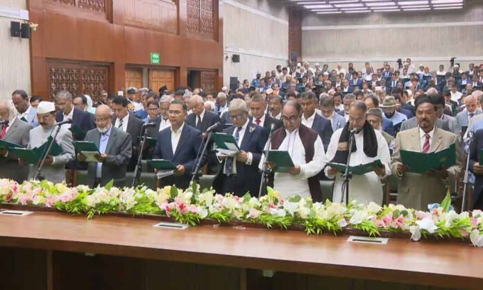 ত্রয়োদশ জাতীয় সংসদ নির্বাচনে জয়ী সংসদ সদস্যদের শপথ গ্রহণ অনুষ্ঠানের ঠিক আগ মুহূর্তে একটি গুরুত্বপূর্ণ নীতিগত সিদ্ধান্ত জানিয়েছে সংখ্যাগরিষ্ঠ দল বিএনপি। দলের স্থায়ী কমিটির সদস্য ও কক্সবাজার-১ আসন থেকে নির্বাচিত সংসদ সদস্য সালাহউদ্দিন আহমদ জানিয়েছেন, বিএনপির নবনির্বাচিত সংসদ সদস্যরা এখনই ‘সংবিধান সংস্কার পরিষদ’-এর সদস্য হিসেবে শপথ নিচ্ছেন না।