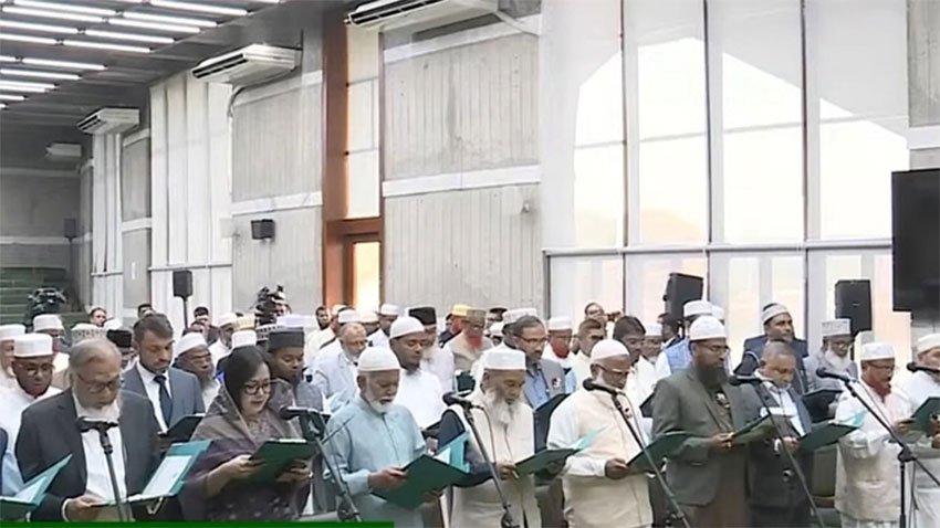 বিএনপির একক শপথ গ্রহণের রেশ কাটতে না কাটতেই দুপুর সাড় ১২টার দিকে সংসদ ভবনের শপথকক্ষে এক ভিন্ন চিত্র দেখা গেল। বাংলাদেশ জামায়াতে ইসলামীর নবনির্বাচিত ৬৮ জন সংসদ সদস্য একযোগে সংসদ সদস্য এবং সংবিধান সংস্কার পরিষদের সদস্য হিসেবে শপথ গ্রহণ করেছেন।