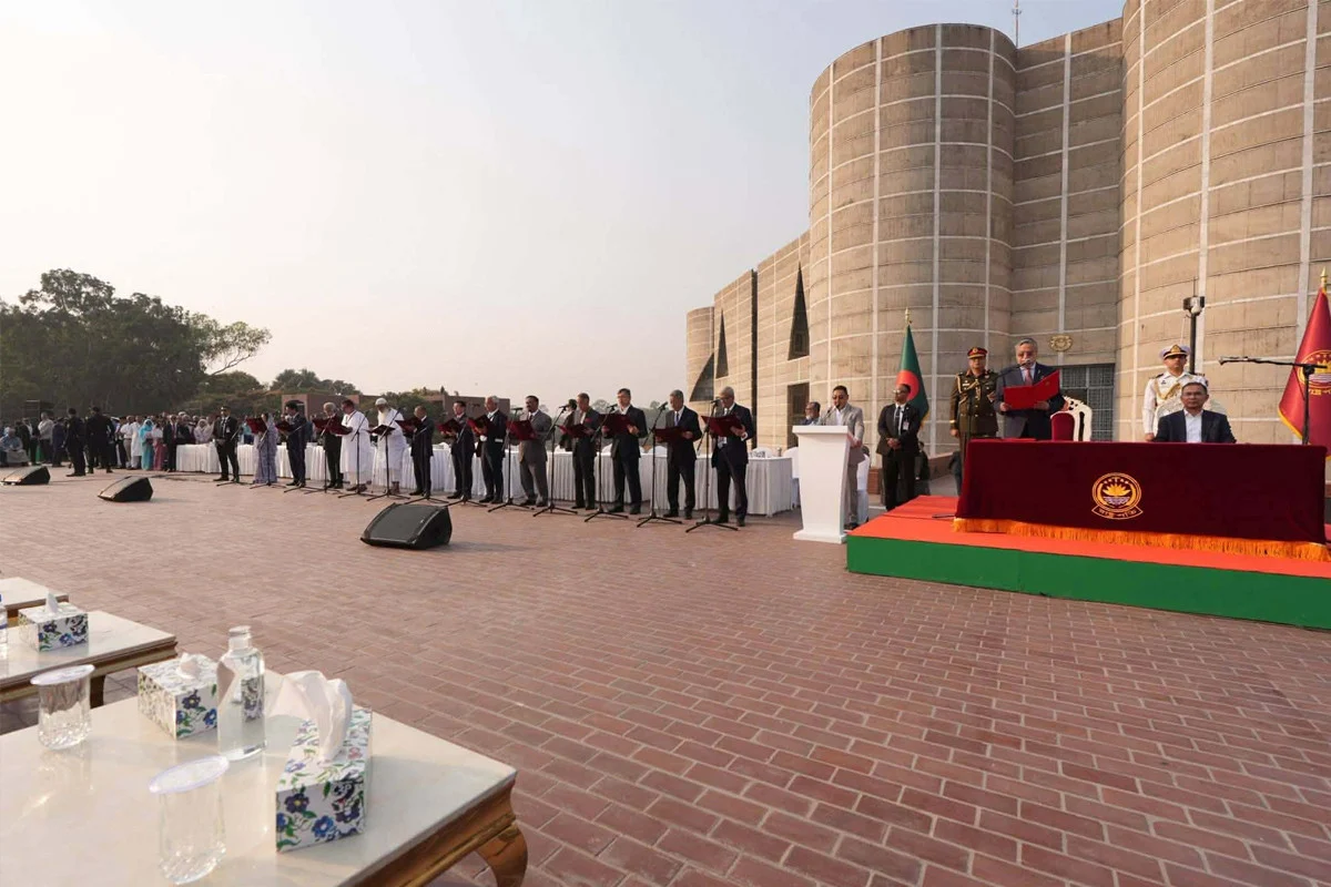 গতকাল শপথ গ্রহণের মাধ্যমে প্রধানমন্ত্রী তারেক রহমানের নেতৃত্বে যাত্রা শুরু করেছে নতুন সরকার। প্রধানমন্ত্রী ছাড়া নতুন সরকারের মন্ত্রিসভায় আছেন ৪৯ জন। এর মধ্যে পূর্ণ মন্ত্রী ২৫ জন, প্রতিমন্ত্রী ২৪ জন। টেকনোক্র্যাট তিনজন। জোটের শরিকদেরও মন্ত্রিসভায় রেখেছেন তারেক রহমান। গতকাল বিকালে জাতীয় সংসদ ভবনের দক্ষিণ প্লাজায় রাষ্ট্রপতি মো. সাহাবুদ্দিন প্রধানমন্ত্রীসহ মন্ত্রিসভার সদস্যদের শপথ পড়ান।