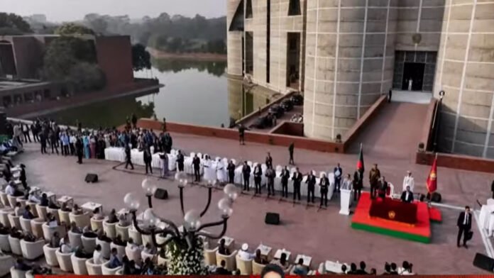 মঙ্গলবার (১৭ ফেব্রুয়ারি) জাতীয় সংসদ ভবনের দক্ষিণ প্লাজায় নতুন মন্ত্রিসভার সদস্যদের শপথ পড়ান রাষ্ট্রপতি মো. সাহাবুদ্দিন।