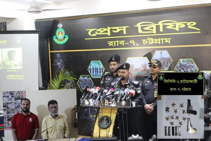 গত ১৭ ফেব্রুয়ারি আনুমানিক ০৫:৪০ মিনিটের সময় র্যাব-৭, চট্টগ্রাম এর একটি আভিযানি দল চট্টগ্রাম নগরীর বায়েজিদ বোস্তামী থানাধীন আরেফিন নগর বায়েজিদ লিংক রোড এলাকার একটি বহুতল ভবনে অভিযান পরিচালনা করে সন্ত্রাসী ১। ইমতিয়াজ সুলতান ইকরাম প্রকাশ সুলতান ইকরাম (২৮), পিতা-মোঃ ইসহাক মিয়া, সাং-মুরাদপুর এবং তার সহযোগী ২। আবুল কালাম আজাদ (৬২), পিতা-নুরুল ইসলাম, সাং-বিবিরহাট, উভয় থানা-পাঁচলাইশ, জেলা-চট্টগ্রামদের ০২টি বিদেশী পিস্তল এবং ৫৬ রাউন্ড গুলি উদ্ধারসহ গ্রেফতার করতে সক্ষম হয়।