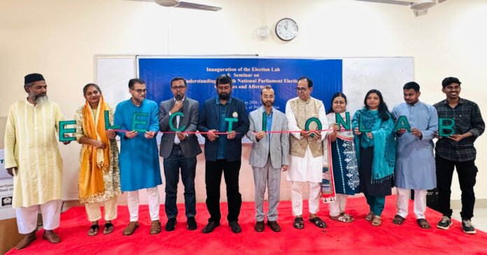 জানা যায়, নির্বাচন, ভোট আচরণ ও নির্বাচনী প্রক্রিয়া নিয়ে পদ্ধতিগত ও প্রায়োগিক গবেষণা পরিচালনার লক্ষ্যে কাজ করবে এই ল্যাব। উদ্বোধনকালে উপাচার্য বলেন, ইলেকশন ল্যাবের যাত্রা শুরুর মাধ্যমে শিক্ষক, শিক্ষার্থীরা ইলেকশনের ডাটা কালেকশন, পর্যালোচনা করে উপকৃত হবে।