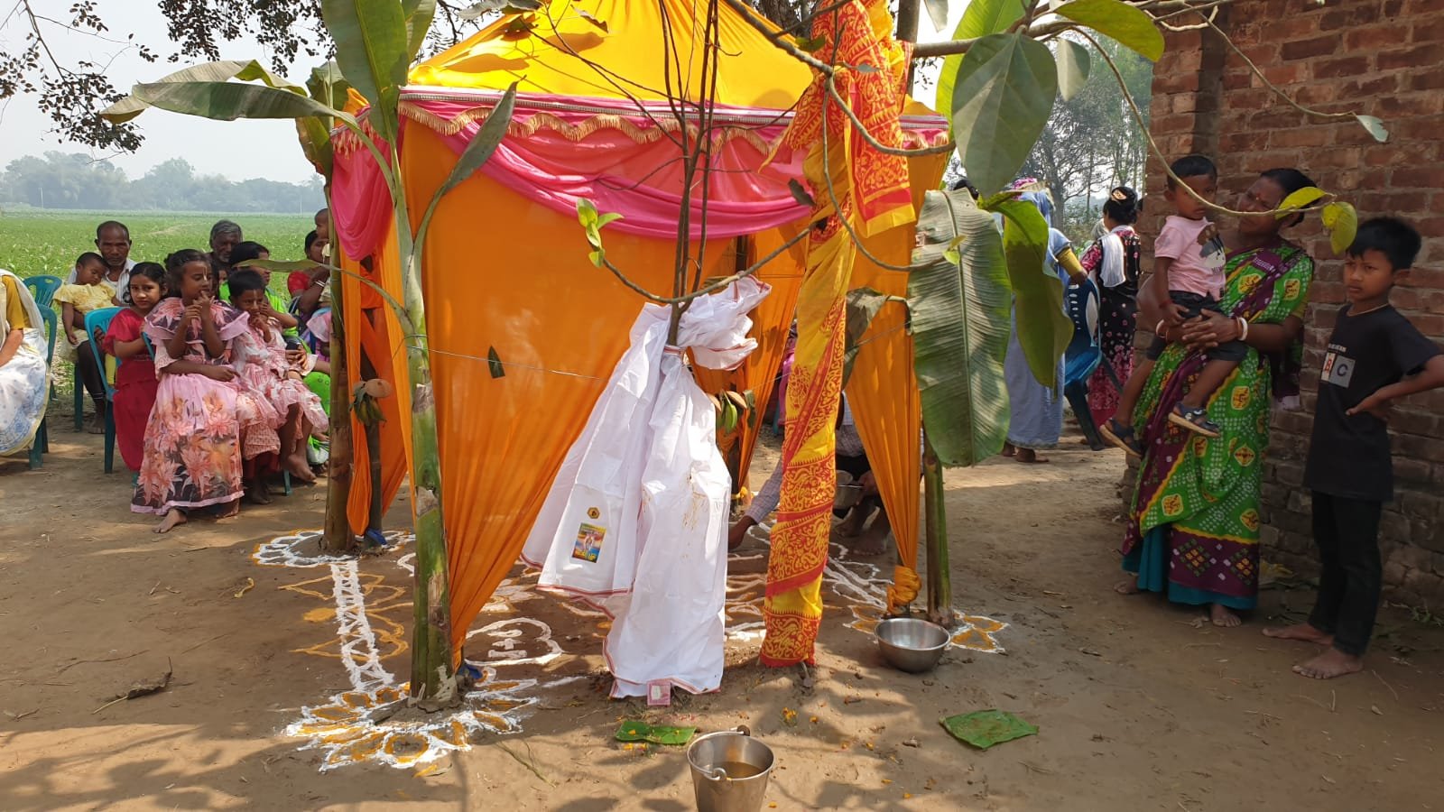 সরেজমিনে দেখা যায়, সাধারণ মানুষের বিয়ের মতোই আয়োজনের কোনো কমতি ছিল না। প্যান্ডেল সাজানো, উলুধ্বনি আর মন্ত্রপাঠে মুখরিত ছিল কালী মন্দির সংলগ্ন পুকুরপাড়। শাস্ত্রীয় নিয়ম অনুযায়ী বট গাছকে কনে এবং পাকুড় গাছকে বর হিসেবে গণ্য করে বিয়ের কাজ সম্পন্ন করেন পুরোহিত শুভন চক্রবর্তী। তিনি জানান, মানুষের বিয়ের মতোই সব মন্ত্র পড়ে এই বিয়ে দেওয়া হয়। সাধারণত দুটি গাছ পাশাপাশি ১.৫ থেকে ২ ফিটের মধ্যে থাকলে ধর্মীয় বিশ্বাস অনুযায়ী এই আয়োজন করা হয়, যা এলাকা ও সংশ্লিষ্ট পরিবারের জন্য মঙ্গলজনক।