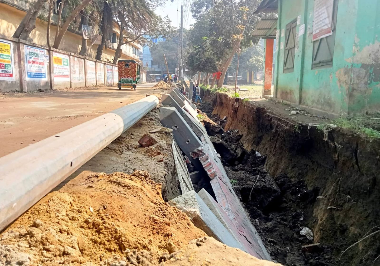 এ বিষয়ে সংশ্লিষ্ট ঠিকাদার প্রতিনিধি বলেন, “কাজের সময় অনাকাঙ্ক্ষিতভাবে দেয়াল ক্ষতিগ্রস্ত হয়েছে। দ্রুত মেরামতের ব্যবস্থা নেওয়া হবে।”