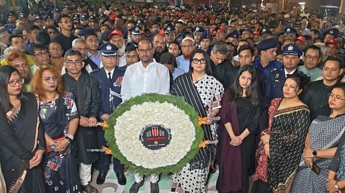 পুষ্পস্তবক অর্পণের পর ভাষা শহিদদের স্মরণে কিছুক্ষণ নীরবে দাঁড়িয়ে তাদের আত্মত্যাগের প্রতি সম্মান জানান প্রতিমন্ত্রী। এ সময় জেলা প্রশাসক শরীফা হক উপস্থিত ছিলেন।