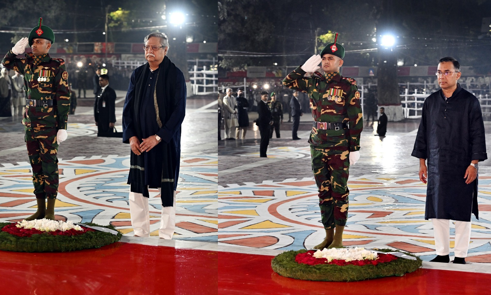 একুশের প্রথম প্রহরে রাষ্ট্রপতি মো. সাহাবুদ্দিন এবং প্রধানমন্ত্রী তারেক রহমান পৃথকভাবে শহিদ বেদিতে পুষ্পস্তবক অর্পণ করে মহান ভাষা শহিদদের স্মৃতির প্রতি গভীর শ্রদ্ধা নিবেদন করেন। প্রধানমন্ত্রী তারেক রহমান শ্রদ্ধা নিবেদন শেষে ভাষাশহীদদের জন্য দোয়া ও মোনাজাত করেন। এরপর তিনি মন্ত্রিপরিষদের সদস্যদের নিয়ে শ্রদ্ধা নিবেদন করেন। পরে বিএনপির চেয়ারম্যান হিসেবে দলের স্থায়ী কমিটির সদস্যদের নিয়েও পুষ্পস্তবক অর্পণ করেন তিনি। এরপর স্ত্রী ডা: জুবাইদা রহমান ও মেয়ে ব্যারিস্টার জাইমা রহমানকে নিয়ে তিনি ভাষাশহীদদের প্রতি শ্রদ্ধা জানান।