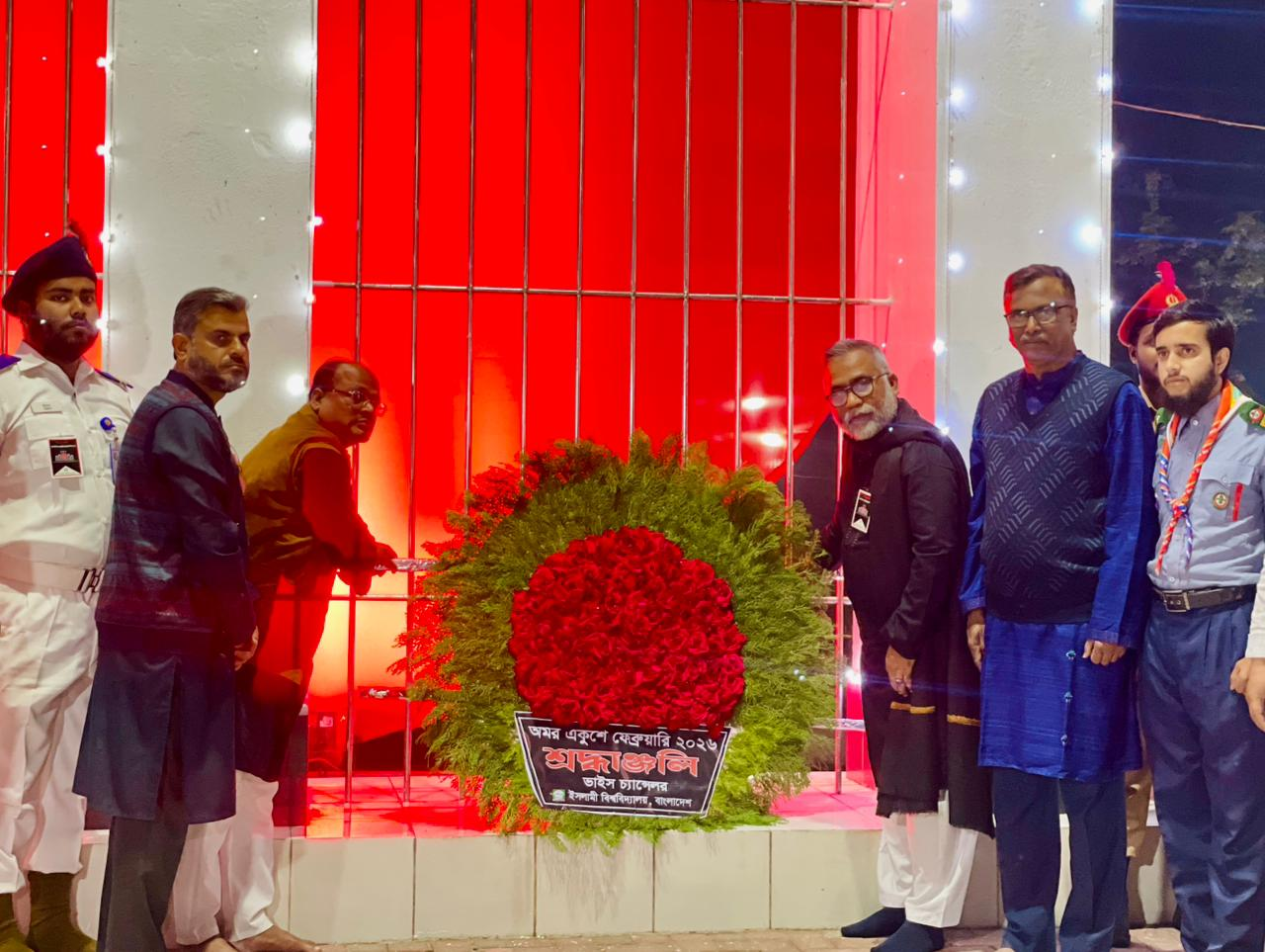 একুশের প্রথম প্রহর রাত ১২ টা এক মিনিটে বিশ্ববিদ্যালয় কেন্দ্রীয় শহিদ মিনারে এই শ্রদ্ধা জানান কর্তৃপক্ষ। এর আগে ২০ ফেব্রুয়ারি বিশ্ববিদ্যালয় কেন্দ্রীয় মসজিদে ভাষা শহিদদের রুহের মাগফিরাতের কামনায় পবিত্র কুরআন খতম এবং বাদ জুম্মা দোয়া মাহফিল অনুষ্ঠিত হয়।