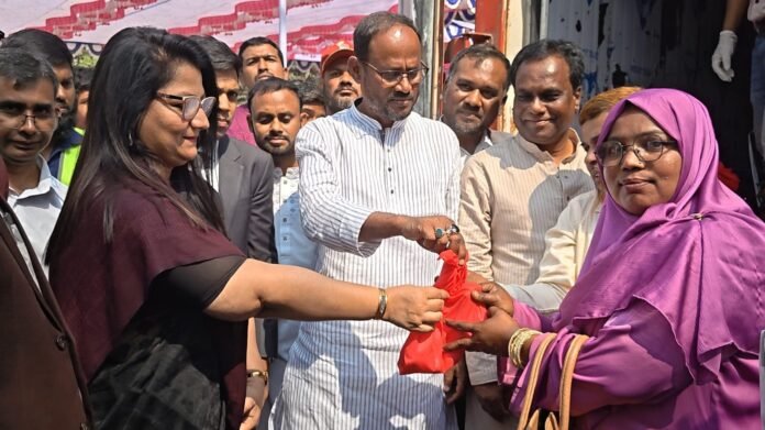 আগ্রহ নিয়ে নিম্ন আয়ের মানুষ দীর্ঘ লাইন ধরে স্বল্পমূল্যে
