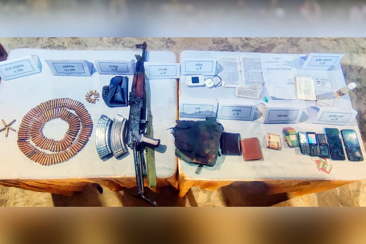 অভিযানের সময় ঘটনাস্থল থেকে উদ্ধার করা হয়েছে: ১টি সাবমেশিনগান (SMG), ১৪৩ রাউন্ড SMG অ্যামোনিশন, ১৪ রাউন্ড পিস্তলের অ্যামোনিশন, ৫ রাউন্ড ব্লাঙ্ক অ্যামোনিশন, ২টি অস্ত্রের ম্যাগাজিনসহ অন্যান্য সরঞ্জামাদি।