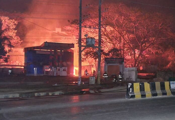 বুধবার (২৬ ফেব্রুয়ারি) সন্ধ্যার দিকে ‘এন আলম’ নামের পাম্পটিতে গ্যাস লিকেজ শুরু হয় বলে জানা গেছে। প্রত্যক্ষদর্শীদের ভাষ্য, সন্ধ্যা ৭টার পর থেকে তীব্র গ্যাসের গন্ধ ছড়িয়ে পড়ে এলাকায়। প্রায় তিন ঘণ্টা গ্যাস নির্গমনের পর রাত ১০টা ২০ মিনিটে বিকট শব্দে বিস্ফোরণ ঘটে এবং মুহূর্তেই আগুন ছড়িয়ে পড়ে চারদিকে।