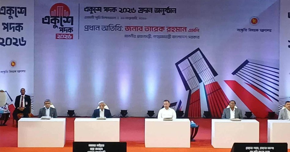 রাষ্ট্রের বিভিন্ন ক্ষেত্রে গুরুত্বপূর্ণ অবদানের স্বীকৃতিস্বরূপ দেশের ৯ জন বিশিষ্ট ব্যক্তি ও একটি জনপ্রিয় ব্যান্ডের হাতে জাতীয় সর্বোচ্চ সম্মাননা ‘একুশে পদক-২০২৬’ তুলে দিয়েছেন প্রধানমন্ত্রী তারেক রহমান।