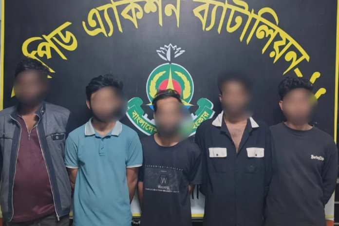 গ্রেপ্তাররা হলো মোঃ আকাশ, মোঃ সিয়াম, মোঃ ফয়সাল, সঞ্জয় শীল, মোঃ বায়েজিদ ২৩।